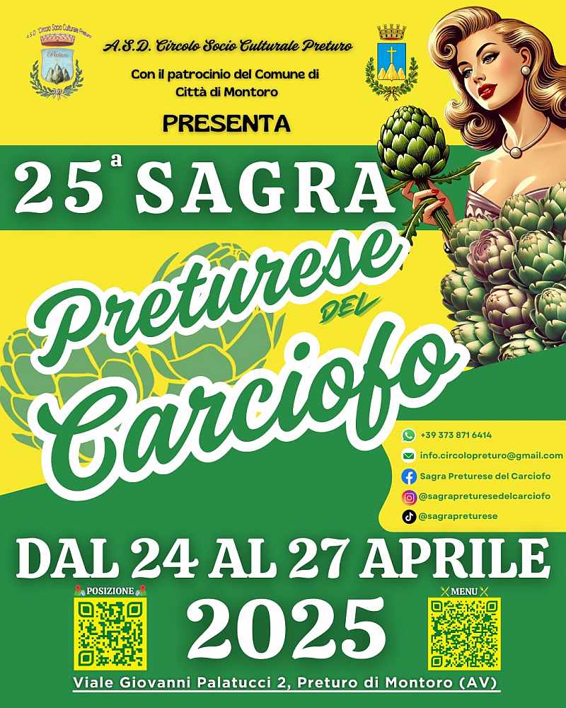 La Sagra Preturese del Carciofo è un evento annuale che celebra il carciofo locale, un prodotto d'eccellenza che deve le sue caratteristiche al terreno fertile della zona di Preturo, una frazione del comune di Montoro, in provincia di Avellino.