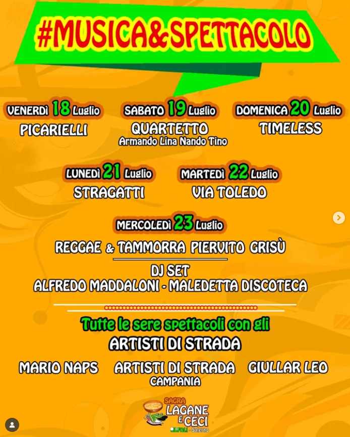 Dal 18 al 23 luglio 2025, potrai gustare questo piatto tipico della cucina contadina salernitana, accompagnato da vino locale e le ormai famose zeppole.