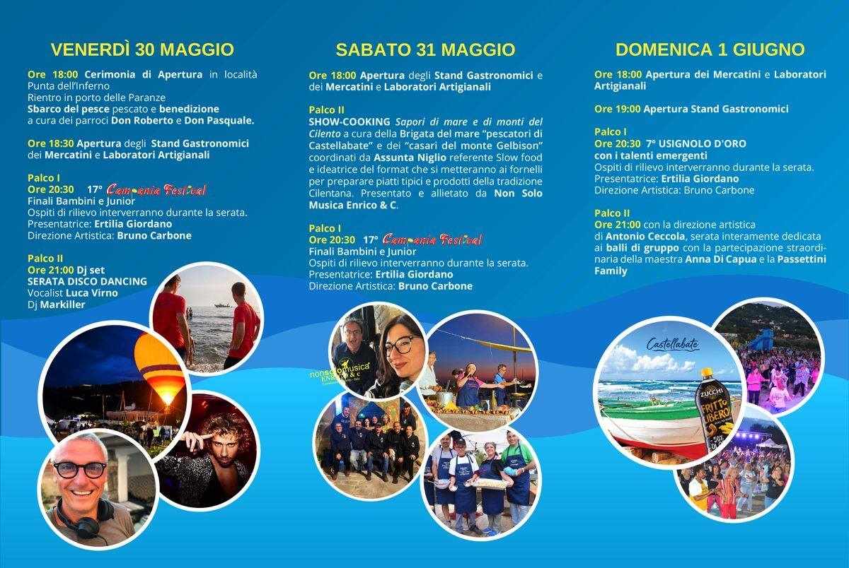 la XIV° edizione della Festa del Pescato di Paranza organizzata nella location del film di Benvenuti al Sud, con la collaborazione delle Associazioni pescatori di Castellabate e con il patrocinio della Regione Campania, il Parco Nazionale del Cilento e Vallo di Diano, la Provincia di Salerno ed il Comune di Castellabate.