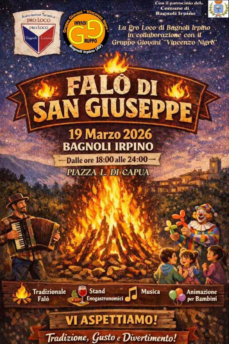 Il Falò di San Giuseppe a Bagnoli Irpino (AV) è una delle tradizioni più suggestive e antiche dell'Irpinia. Conosciuta localmente come la notte della "Vampa", questa festa unisce fede religiosa, riti propiziatori per l'arrivo della primavera e convivialità gastronomica.