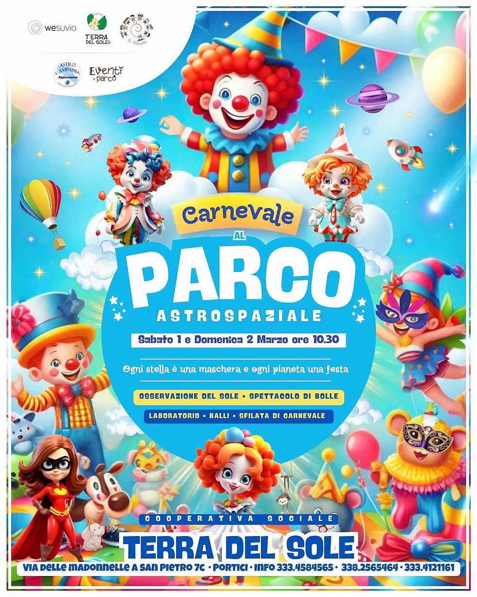 Immersi nel verde, tra musica, colori e travestimenti, anche quest' anno il collaudato trio Terra del Sole Cooperativa Sociale, La Chiocciola wesuvio vi aspetta per questo evento tanto atteso dai bambini e questa volta con una sorpresa...