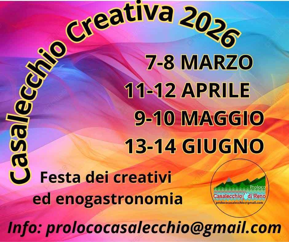 Sono aperte le iscrizioni per “Casalecchio Creativa" che si terrà nella zona pedonale di Via XX Settembre, Via Pascoli e Piazza del Popolo nelle seguenti date:
