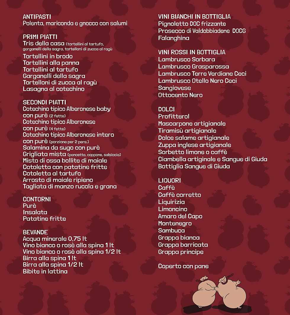 Primi: Tortellini in brodo, garganelli della sagra, tortelloni di zucca al ragù e lasagne al cotechino sono solo alcune delle proposte per soddisfare anche i palati più esigenti.