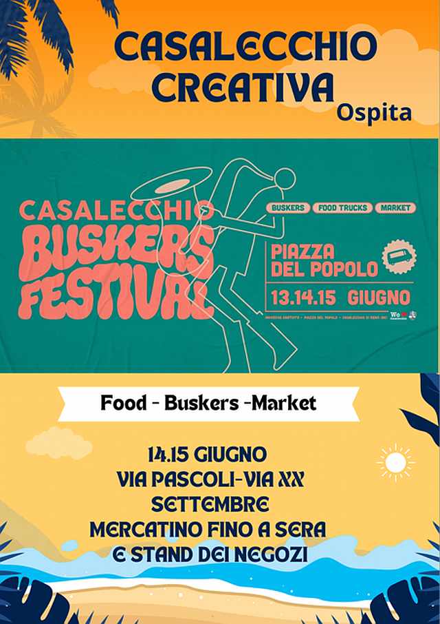 CASALECCHIO CREATIVA ospita il BUSKERS FESTIVAL con spettacoli dalle ore 17 alle ore 22, cena sotto le stelle in Piazza del Popolo con trucks food e street food e i ristoranti dell'area pedonale.