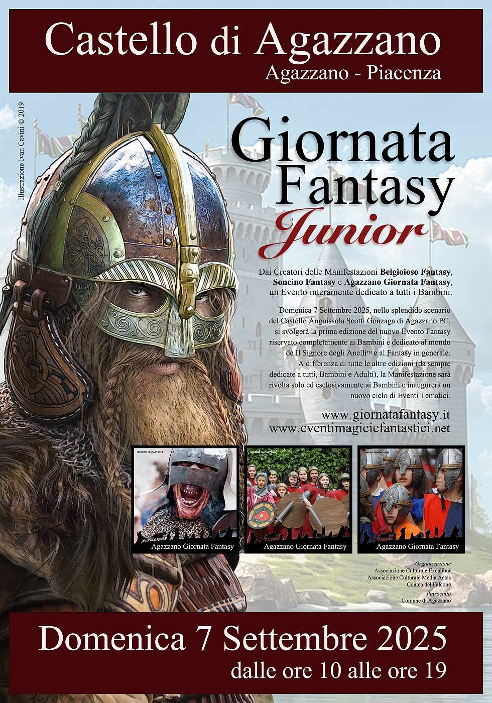 Domenica 7 Settembre 2025, dalle ore 10,00 alle ore 19,00, nello splendido scenario del Castello Anguissola Scotti Gonzaga di Agazzano PC, si svolgerà la prima edizione del nuovo Evento Fantasy riservato completamente ai Bambini e dedicato al mondo de Il Signore degli Anelli™ e al Fantasy in generale.