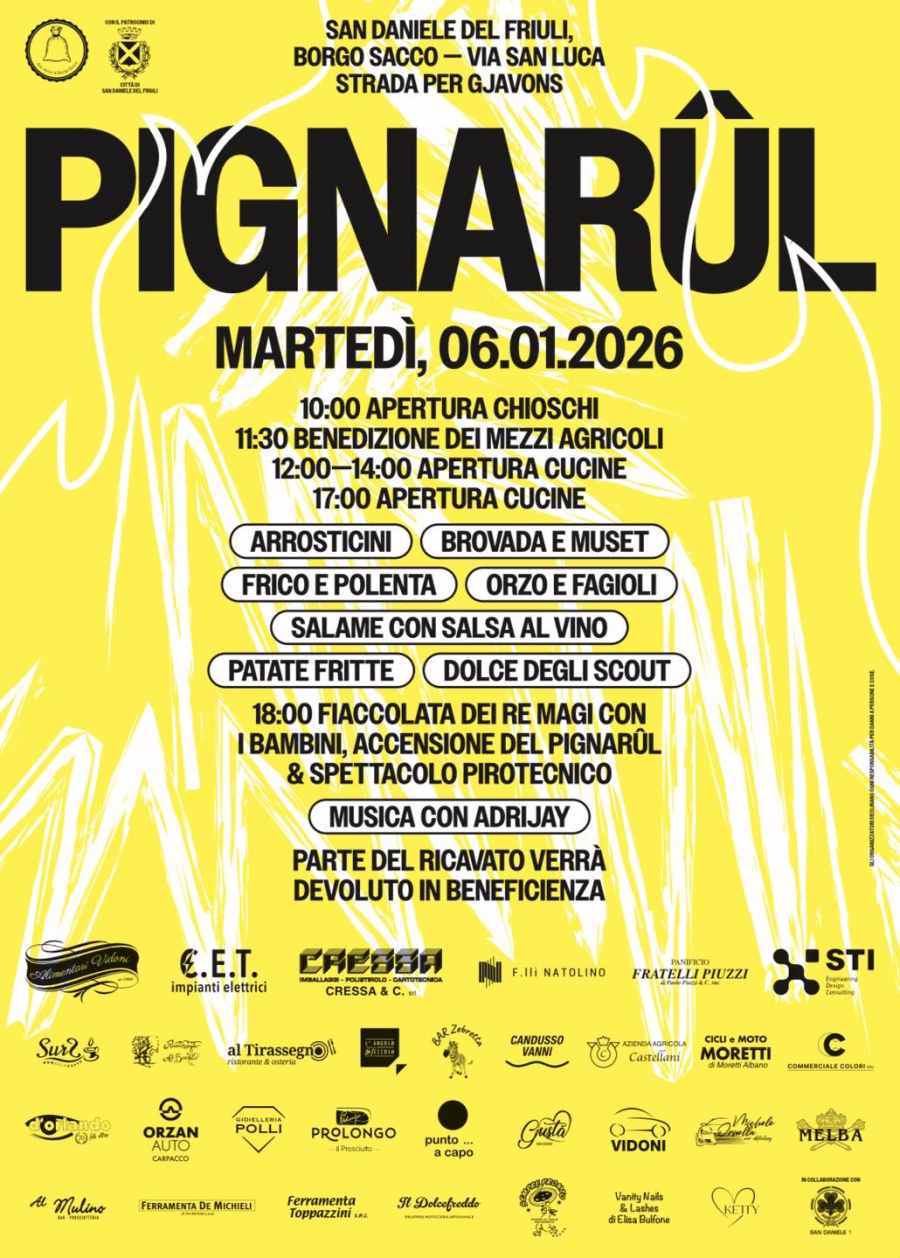 Appuntamento al 6 gennaio 2026 per il tradizionale Pignarûl presso il parco Sfuei di San Daniele.