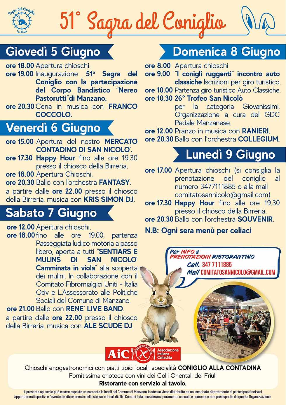 San Nicolò di Manzano (UD) "Sagra del Coniglio" dal 5 al 9 Giugno 2025