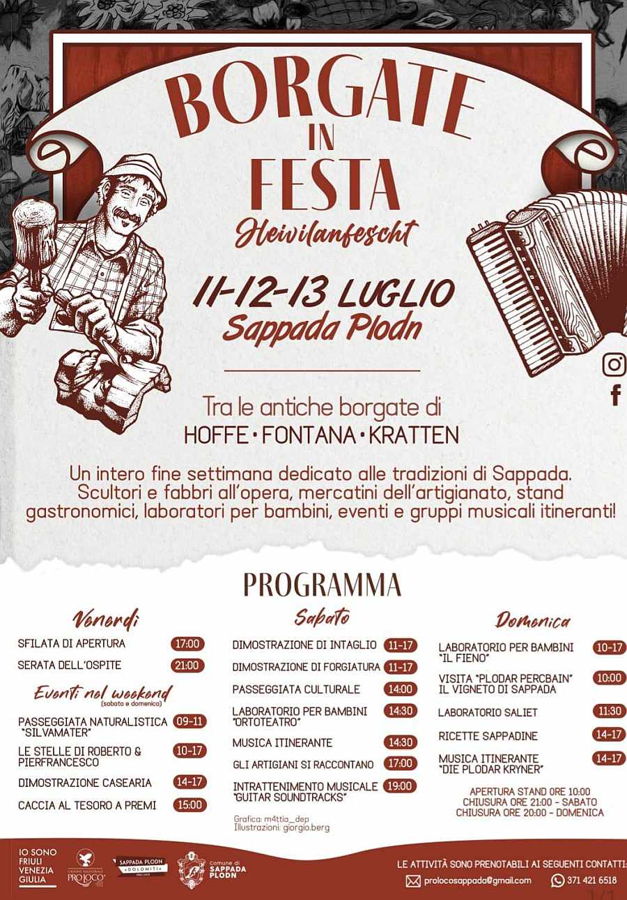 Tra le antiche borgate di Hoffe, Fontana e Kratten troverete scultori e fabbri all’opera, mercatini dell’artigianato, stand gastronomici, laboratori per bambini, eventi e gruppi musicali itineranti!