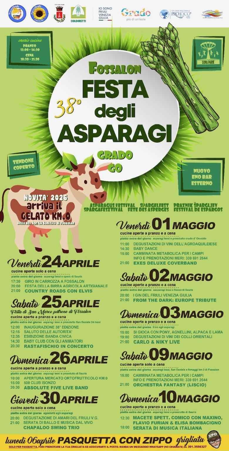 La Festa degli Asparagi di Fossalon trasforma la frazione agricola di Grado nel cuore pulsante del gusto primaverile. Situata a pochi chilometri dalla laguna, la sagra offre un'immersione totale nelle tradizioni rurali e nei sapori del territorio.