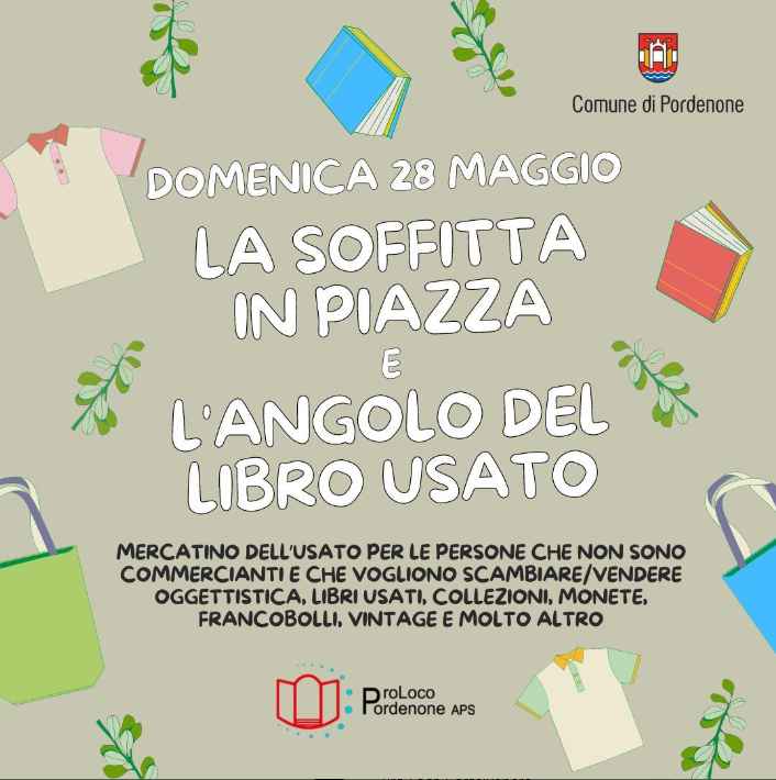 Domenica 28 maggio, Piazza Risorgimento e le zone limitrofe ospiteranno La Soffitta in Piazza e L'angolo del libro usato.