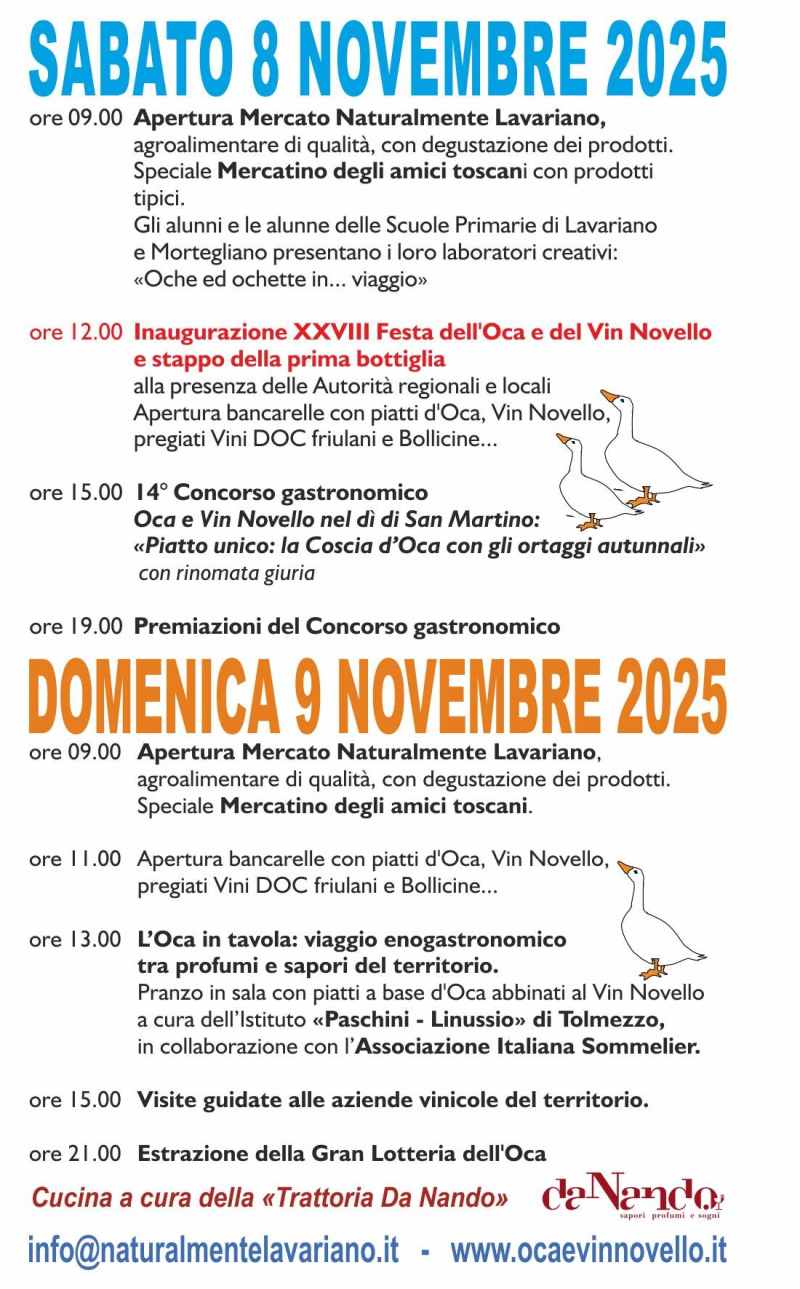 Si rinnova anche quest'anno, sabato 8 e domenica 9 novembre, la Festa dell'Oca e del Vin Novello, un appuntamento che riverdita l’antica tradizione con pietanze prelibate a base d'oca, accompagnate dalla fresca e amabile primizia della vendemmia del vin novello.