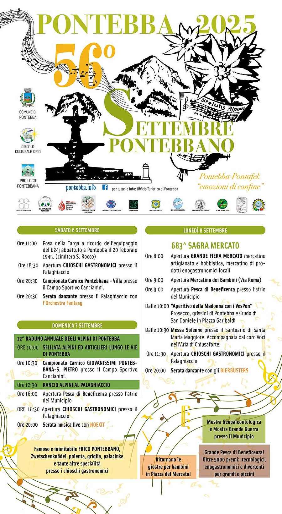 Il "Settembre Pontebbano" è una tradizionale festa di fine estate che celebra le tradizioni e la cultura locale.