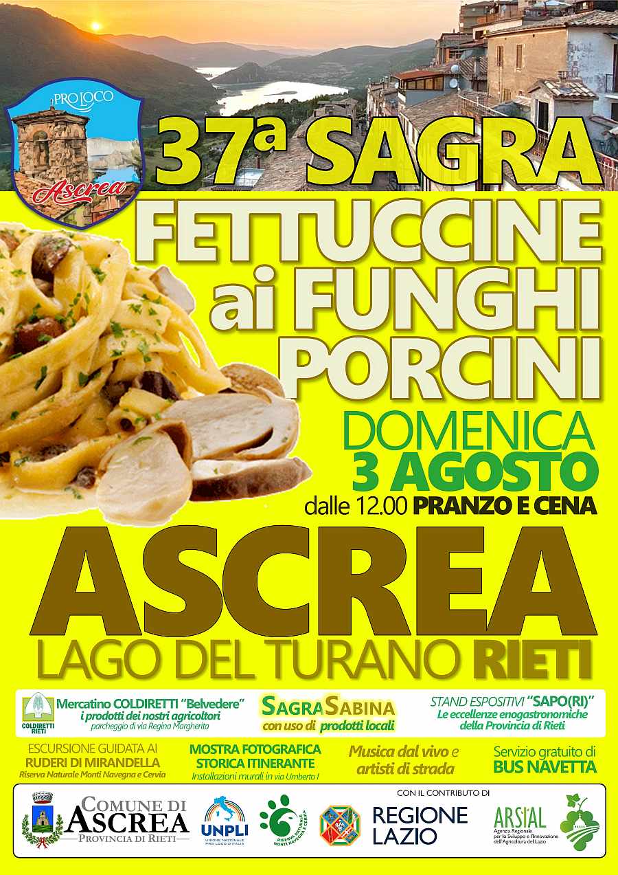 È ufficialmente iniziato il conto alla rovescia per uno degli appuntamenti gastronomici più attesi dell’estate laziale: la 37ª Sagra delle Fettuccine ai Funghi Porcini, che si svolgerà domenica 3 agosto 2025 ad Ascrea, suggestivo borgo affacciato sulle sponde del Lago del Turano.