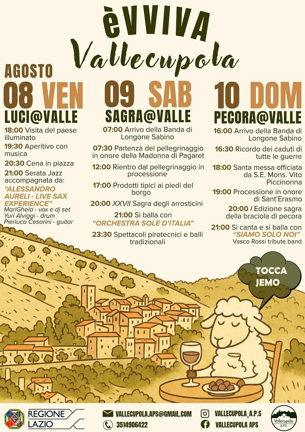 "èVVIVA Vallecupola" è un evento estivo che anima il piccolo borgo, offrendo serate di musica, gastronomia e convivialità.