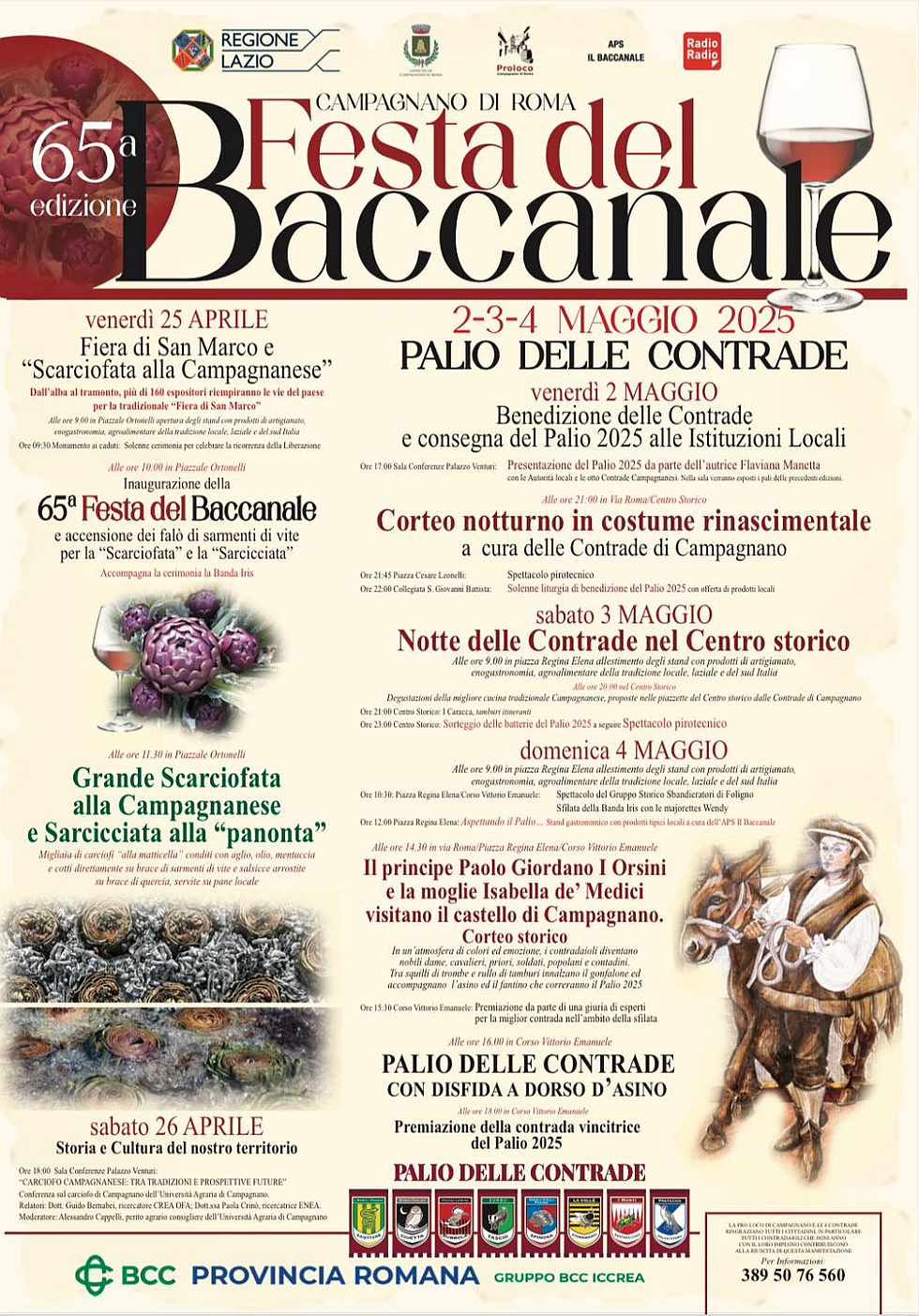 Ritorno del Baccanale con la tradizionale festa, fiera di San Marco, Scarciofata, palio delle contrade, visite guidate e molto altro...
