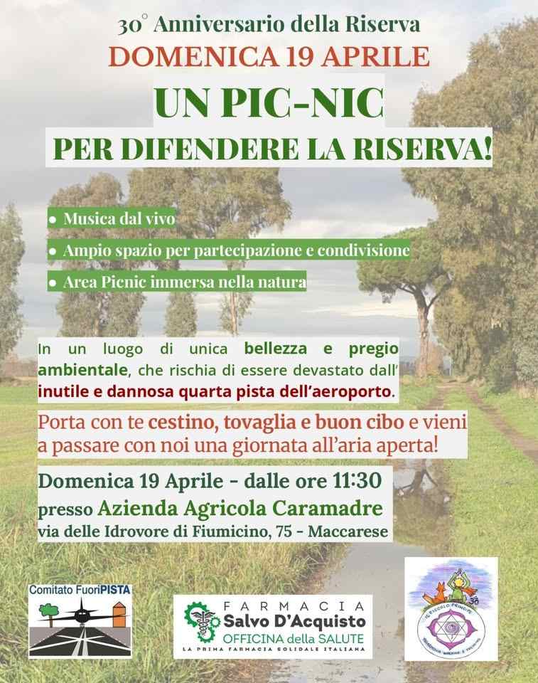 Il 19 Aprile 2026 Maccarese (Fiumicino), presso l'Azienda Agricola Caramadre, si svolge una giornata di sensibilizzazione e partecipazione collettiva dedicata alla tutela del litorale e delle sue aree protette per festeggiare i 30 anni della Riserva, ma anche per dire chiaramente da che parte sta la popolazione.