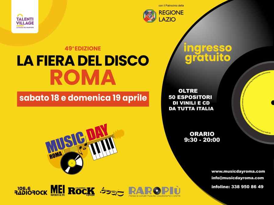 Il Music Day Roma è l'appuntamento culturale dedicato a collezionisti e appassionati di musica; 60 espositori provenienti da tutta Italia, una ricchissima proposta di dischi in vinile, cd, poster, riviste, oggettistica, memorabilia, accessori vintage per tutti i gusti e per tutte le tasche.