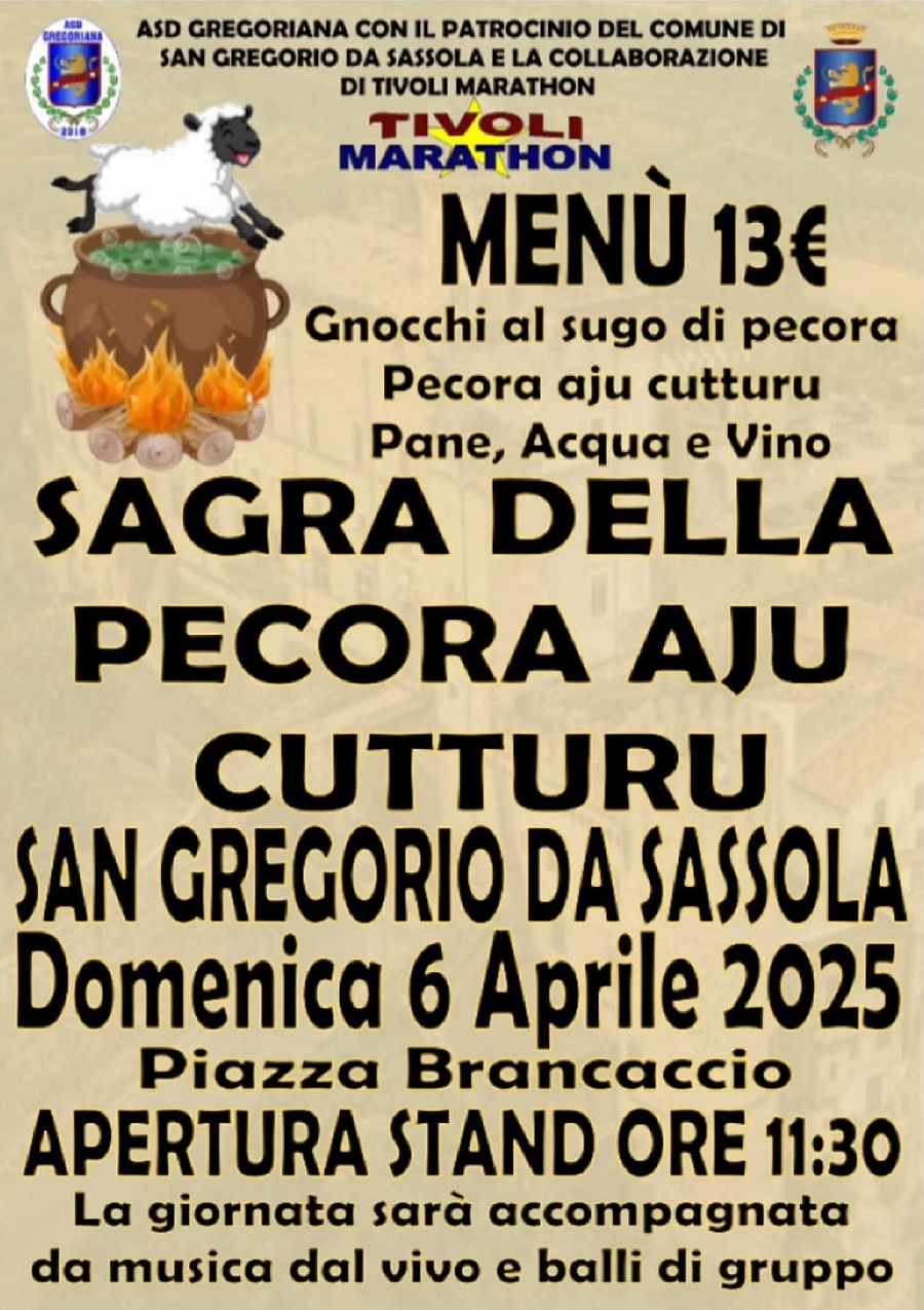 La Sagra della Pecora "Aju Cutturu" è un evento gastronomico che si svolge a San Gregorio da Sassola, un pittoresco borgo medievale alle porte di Tivoli, nel Lazio.