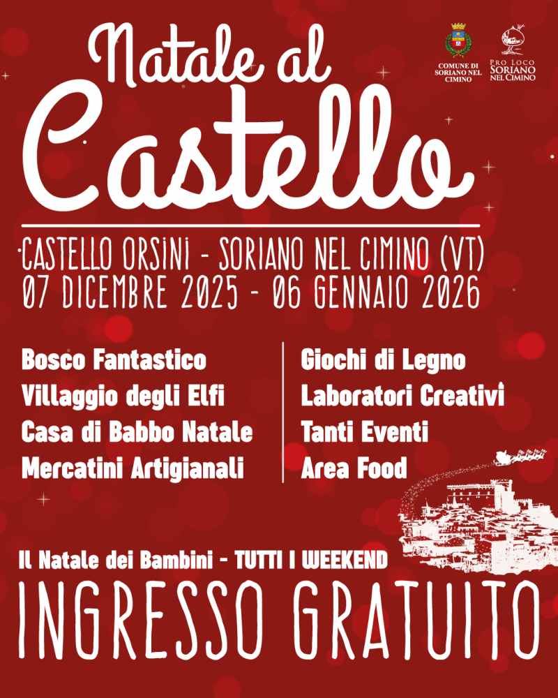 “Natale al Castello” nasce con un obiettivo chiaro: valorizzare la storia locale, promuovere l’identità del territorio e offrire una proposta culturale e turistica capace di attrarre visitatori da tutta la regione. Il periodo delle feste diventa così occasione per vivere l’antico borgo sorianese, passeggiare tra vicoli e botteghe, gustare le eccellenze enogastronomiche e riscoprire il fascino dell’inverno in Tuscia.