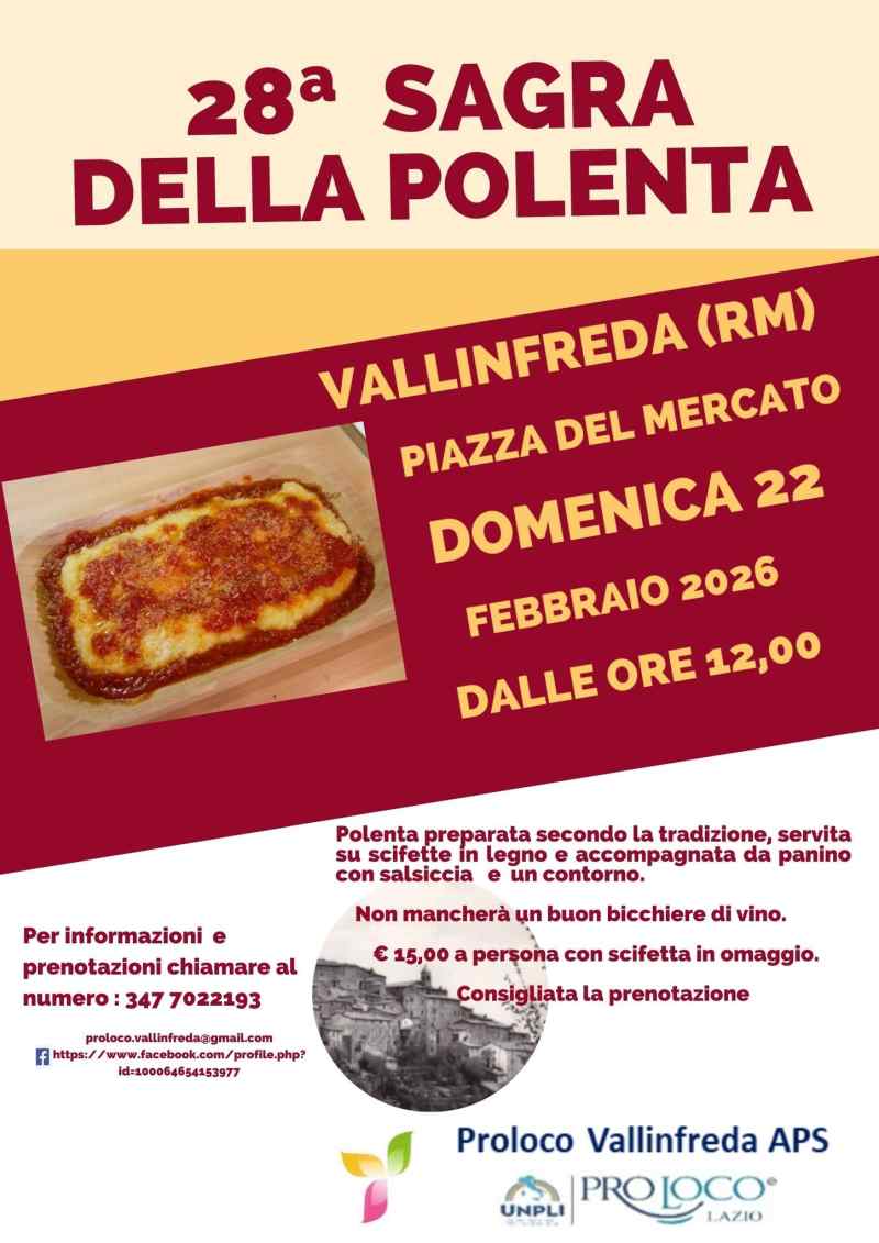 A Vallinfreda polenta preparata secondo la tradizione, servita su scifette in legno e accompagnata da panino con salsiccia e un contorno.