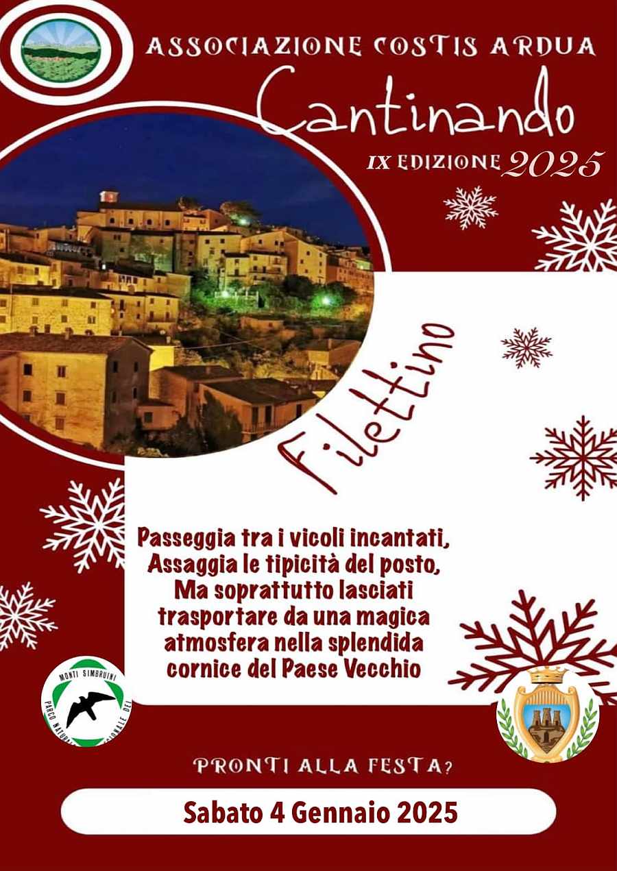 9^ edizione dell'evento enogastronomico, organizzato dall’’associazione “Costis Ardua” di Filettino, che si svilupperà nella travolgente atmosfera del “paese vecchio”, per vivere un'esperienza unica all’insegna del divertimento