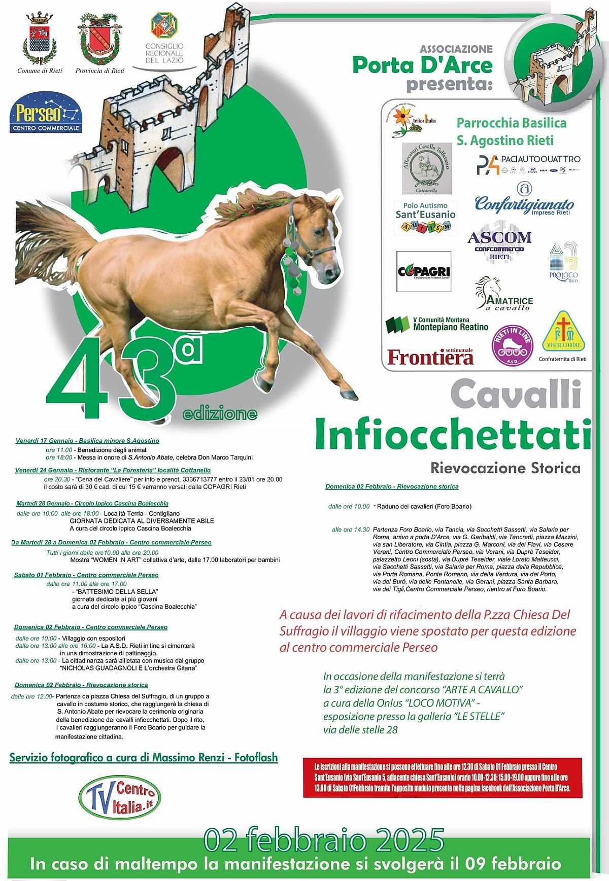 A Rieti si ripete ogni anno una iniziativa che affonda le radici nel tessuto storico e sociale della città: una tradizione risalente ai primi del novecento, quando il mestiere principale era il carrettiere, prevedeva che i cavalli addobbati fossero condotti alla festa della benedizione proprio in occasione della ricorrenza di Sant’Antonio Abate.