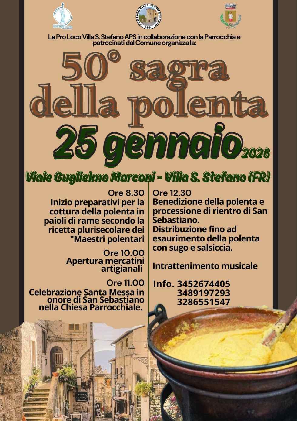 Vieni a degustare, a pranzo, un piatto di polenta con salsiccia alla 50^ Sagra della Polenta, organizzata dalla ProLoco Villa S. Stefano APS