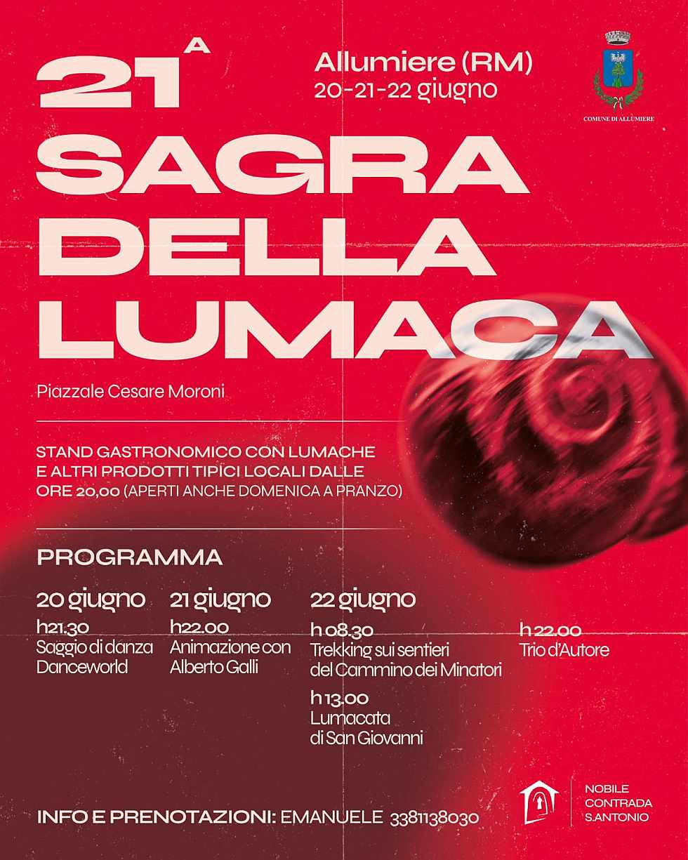 21^ edizione della Sagra della Lumaca, come sempre al Piazzale Cesare Moroni ad Allumiere.