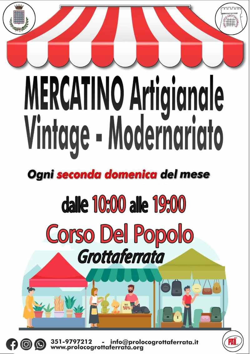 Ogni 2^ domenica del mese, il Mercatino Artigianale su Corso del Popolo, evento voluto dalla Pro Loco, con il patrocinio del Comune di Grottaferrata, per promuovere la creatività di artigiani e hobbisti.
