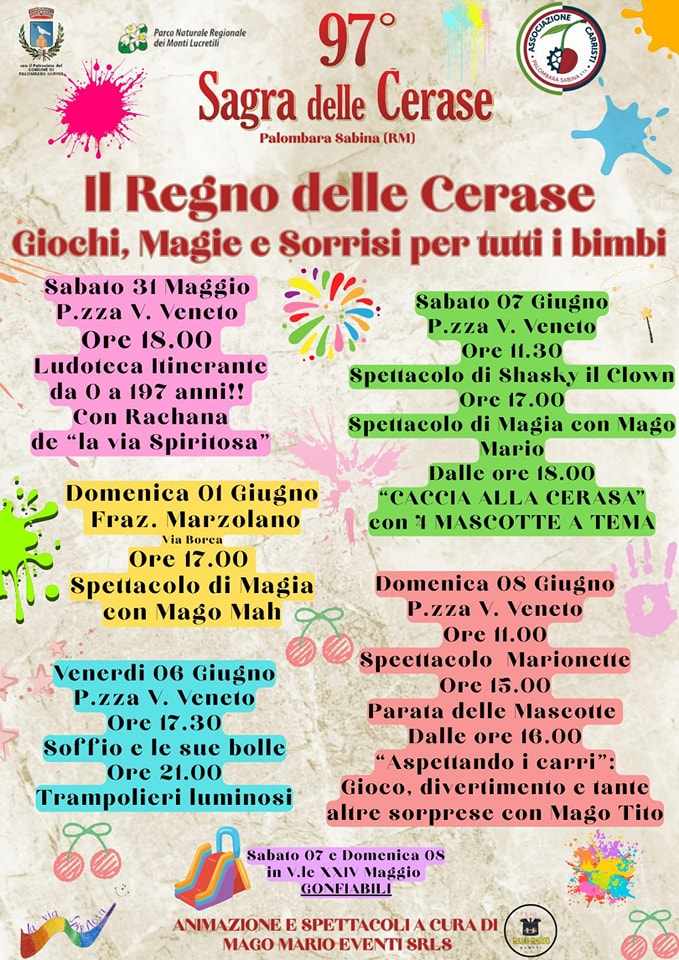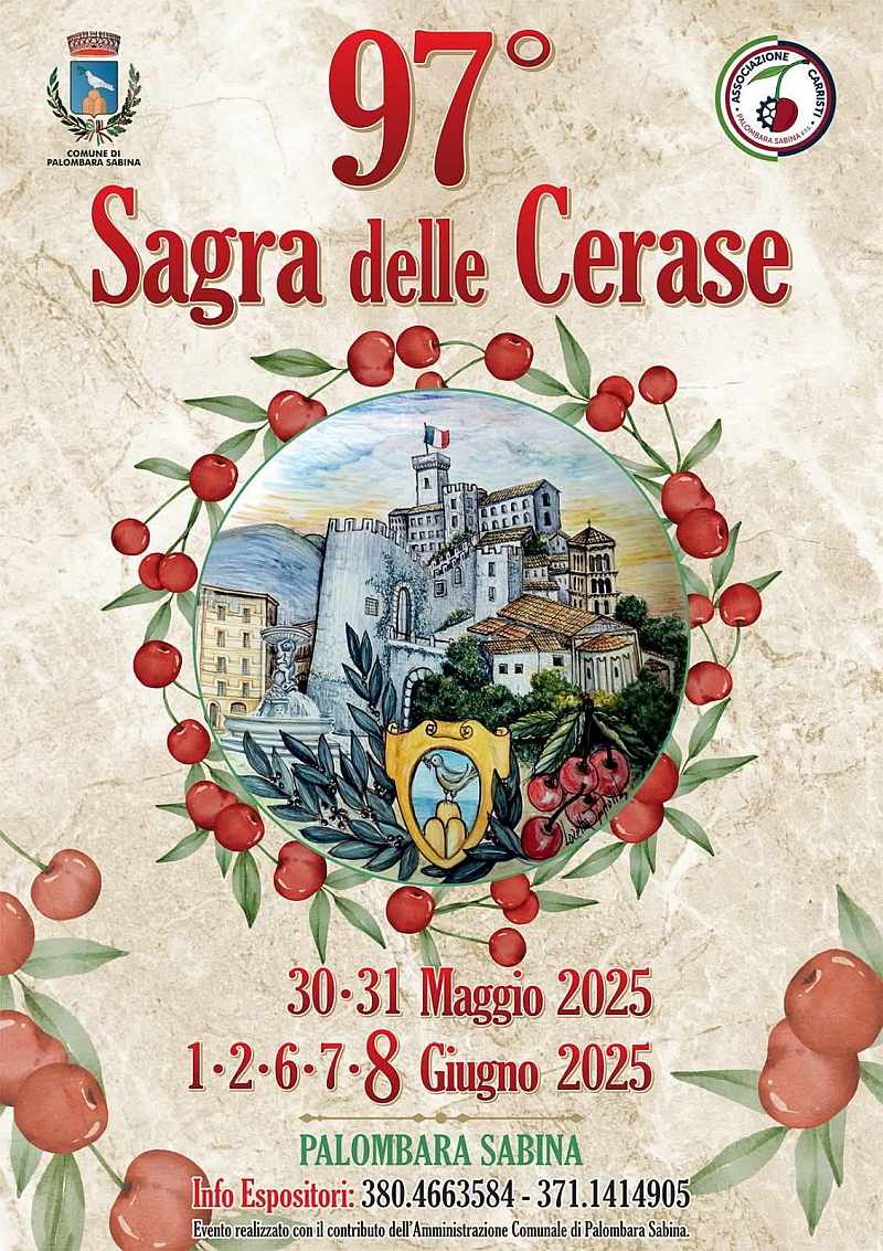 La 97^ Sagra delle Cerase a Palombara Sabina è un evento annuale che celebra la ciliegia locale, nota come la Ravenna.