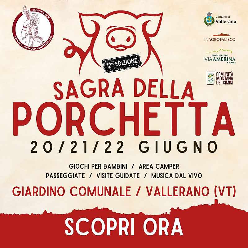Unisciti a noi per un’esperienza gastronomica unica presso il Giardino Comunale di Vallerano (VT) per la 12^ Sagra della Porchetta!