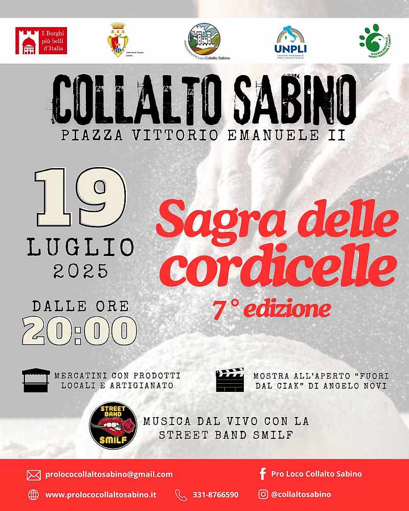 a Collalto Sabino – Piazza Vittorio Emanuele II per la 7ª edizione della Sagra delle Cordicelle, piatto tipico della tradizione locale 🍝