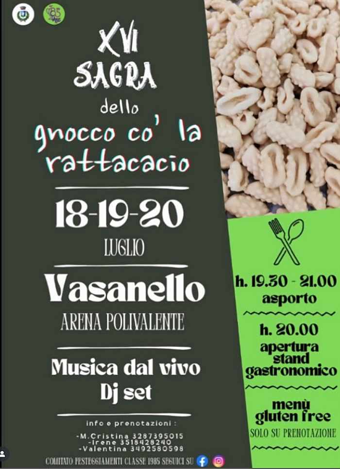 se ancora non la conoscessi, si tratta di una ricetta tanto semplice quanto gustosa, infatti nell’antica tradizione Vasanellese, le massaie passavano lo gnocco sulla “rattacacio” (la grattugia per il formaggio) che gli conferisce quella tipica superfice ruvida, che consente allo gnocco di trattenere il prezioso condimento nel percorso dal piatto alla tua bocca.