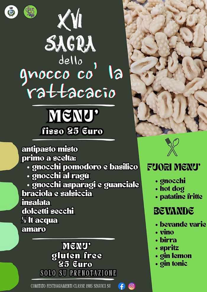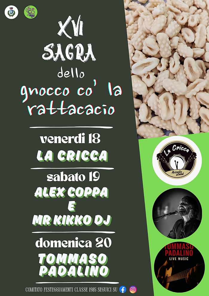 La classe 1985 è lieta di presentare la 16^ a Edizione della “Sagra dello Gnocco co' la rattacacio”.