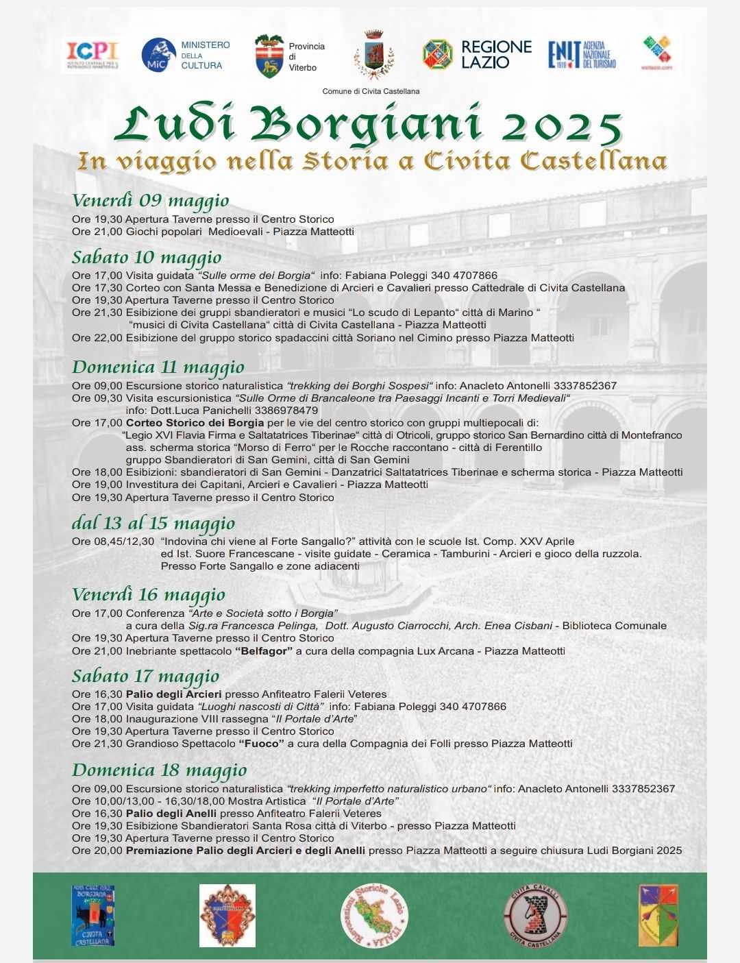 Manifestazione storico rievocativa dove si viene catapultati nel A.D. 1502, in occasione della venuta a Civita Castellana del Papa Alessandro Vl Borgia per l inaugurazione della Fortezza Sangallo.