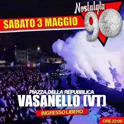 Sabato 3 maggio - Ore 22:00: apertura con Nostalgia 90, il party anni '90 più famoso d’Italia. Ingresso gratuito.