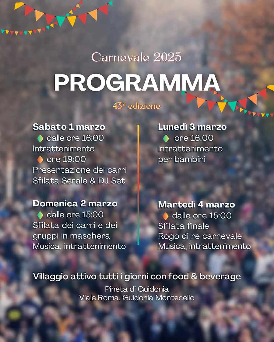 Inoltre, il villaggio di Carnevale accompagnerà l’evento per tutta la sua durata con musica, food, beverage e tanto intrattenimento per tutti!