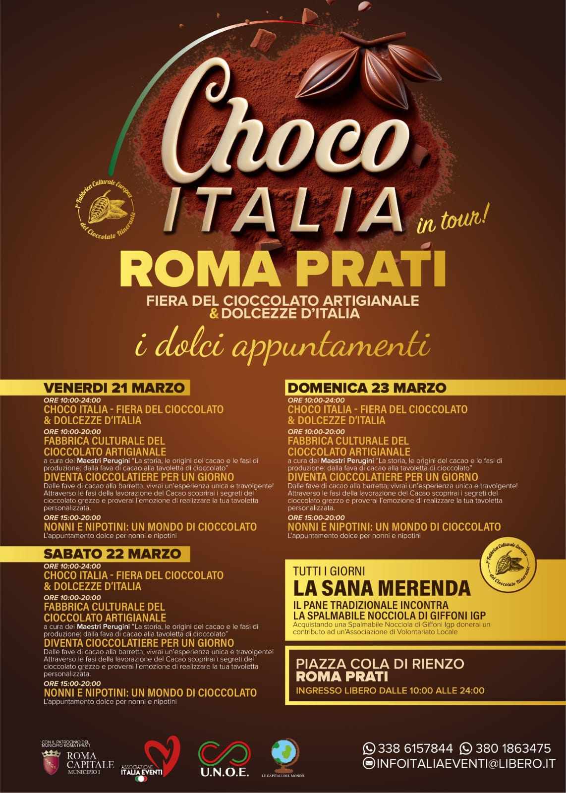 In programma da venerdì 21 a domenica 23 marzo, in zona Roma Prati, la fiera del cioccolato artigianale e delle dolcezze italiane resterà aperta ininterrottamente dalle ore 10 a mezzanotte, con ingresso libero e gratuito.