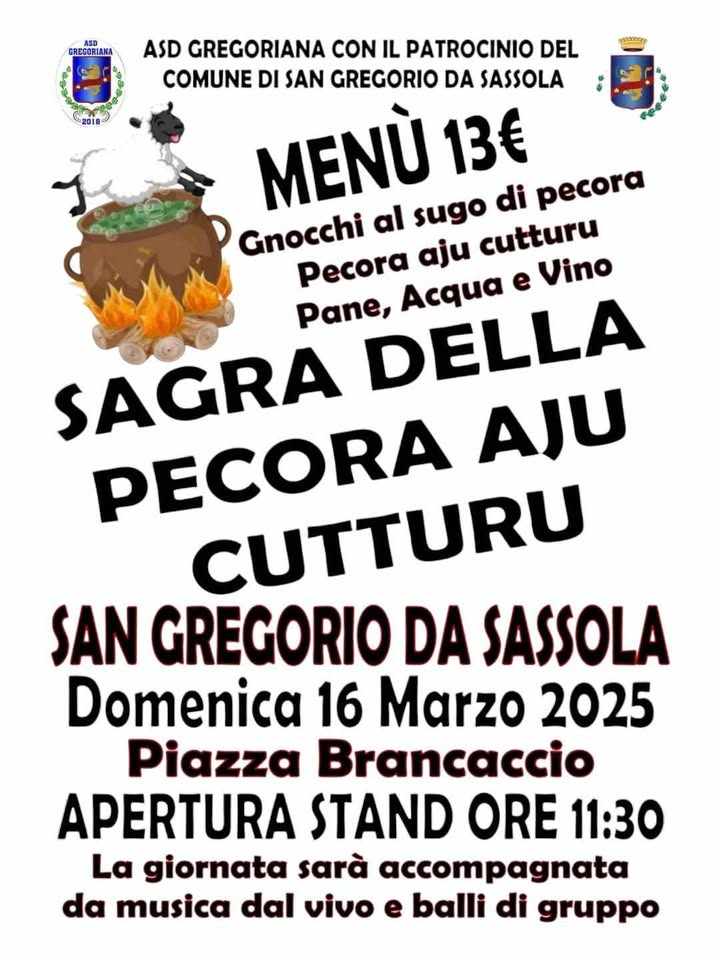 La Sagra della Pecora "Aju Cutturu" è un evento gastronomico che si svolge a San Gregorio da Sassola, un pittoresco borgo medievale alle porte di Tivoli, nel Lazio.