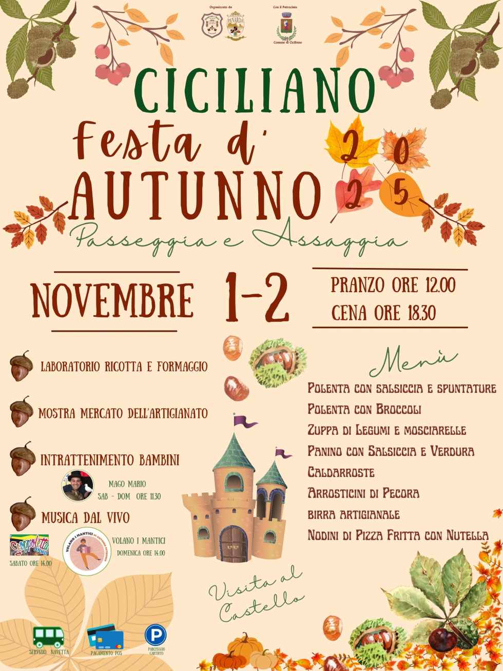 Un evento che unisce sapori, cultura e convivialità, regalando ai visitatori la magia dell’autunno nelle terre di Ciciliano.