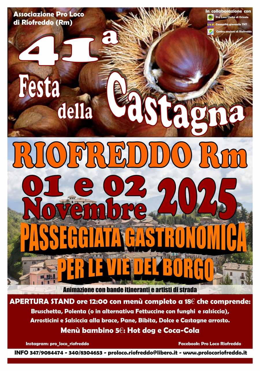 Giunta alla sua 41^ edizione, la festa si svolgerà presso le strade del borgo di Riofreddo.