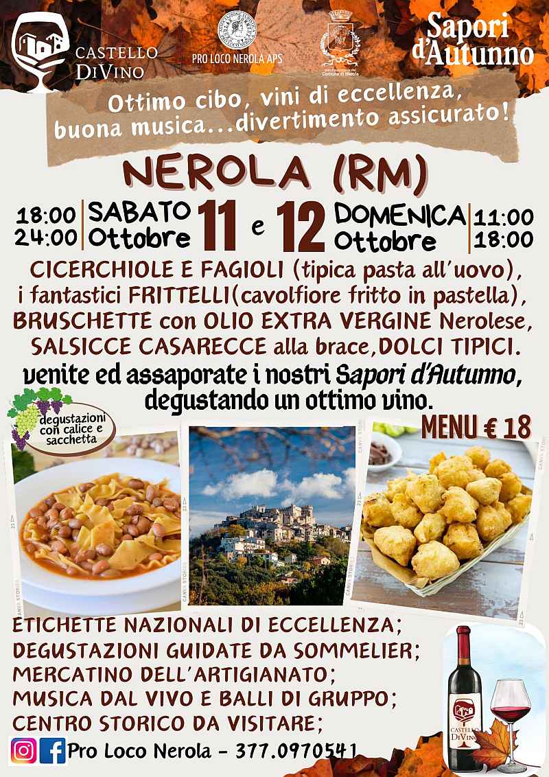 VENITE A NEROLA, VI ASPETTIAMO PER SCOPRIRE I NOSTRI SAPORI D'AUTUNNO, DEGUSTANDO UN'OTTIMO VINO !