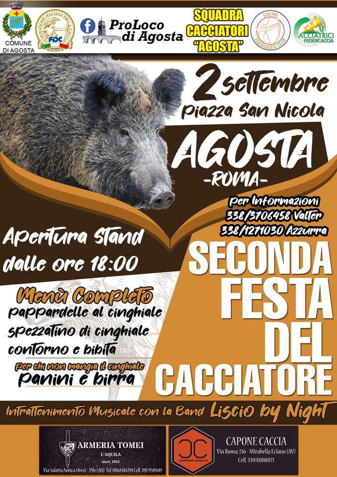 Ti Aspettiamo ad Agosta (RM) sabato 2 settembre per la II^ FESTA DEL CACCIATORE – SAGRA DEL CINGHIALE!
