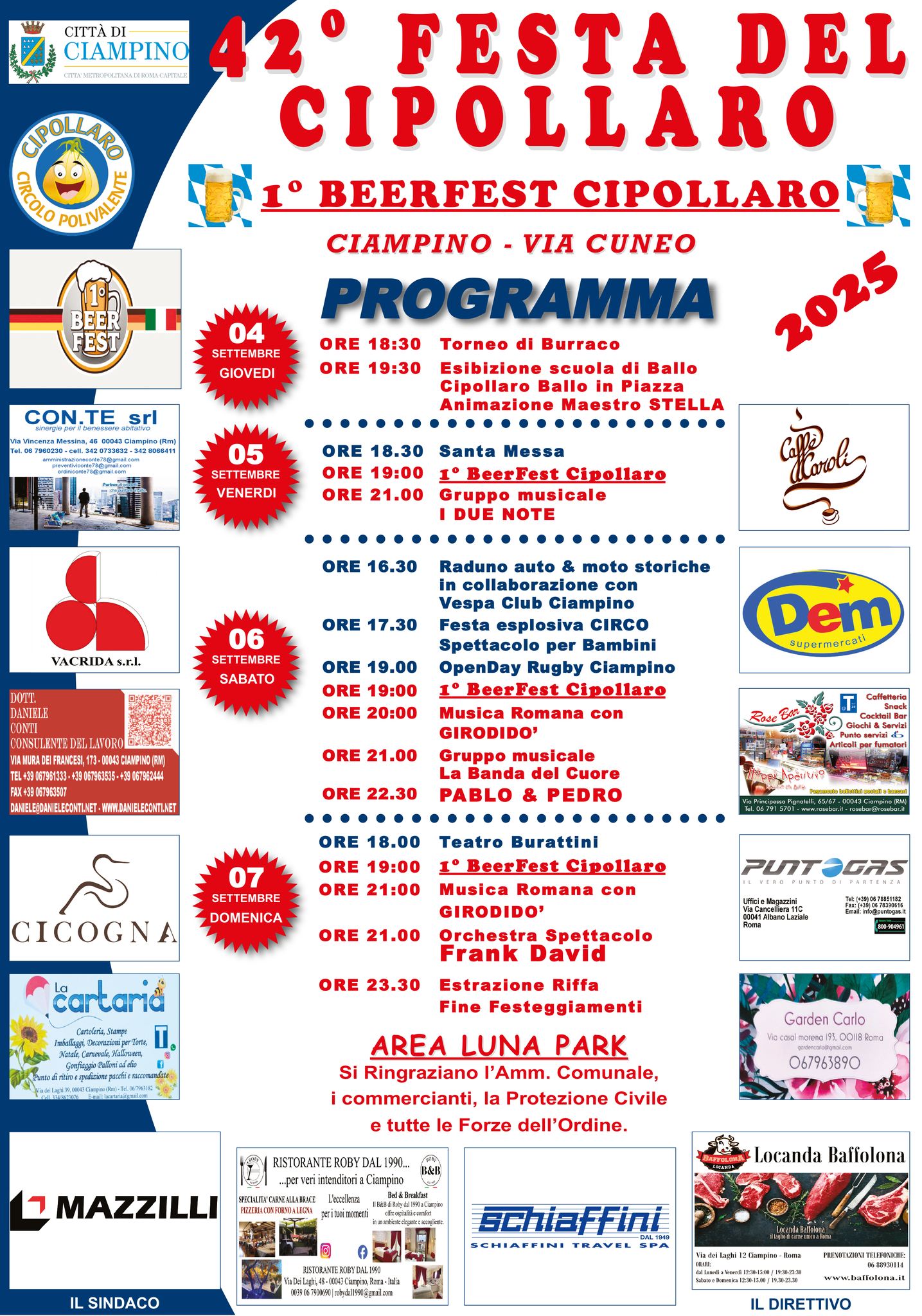 L'evento, organizzato dal circolo polivalente Cipollaro, unisce musica, spettacoli e stand gastronomici in un'atmosfera di festa e convivialità.