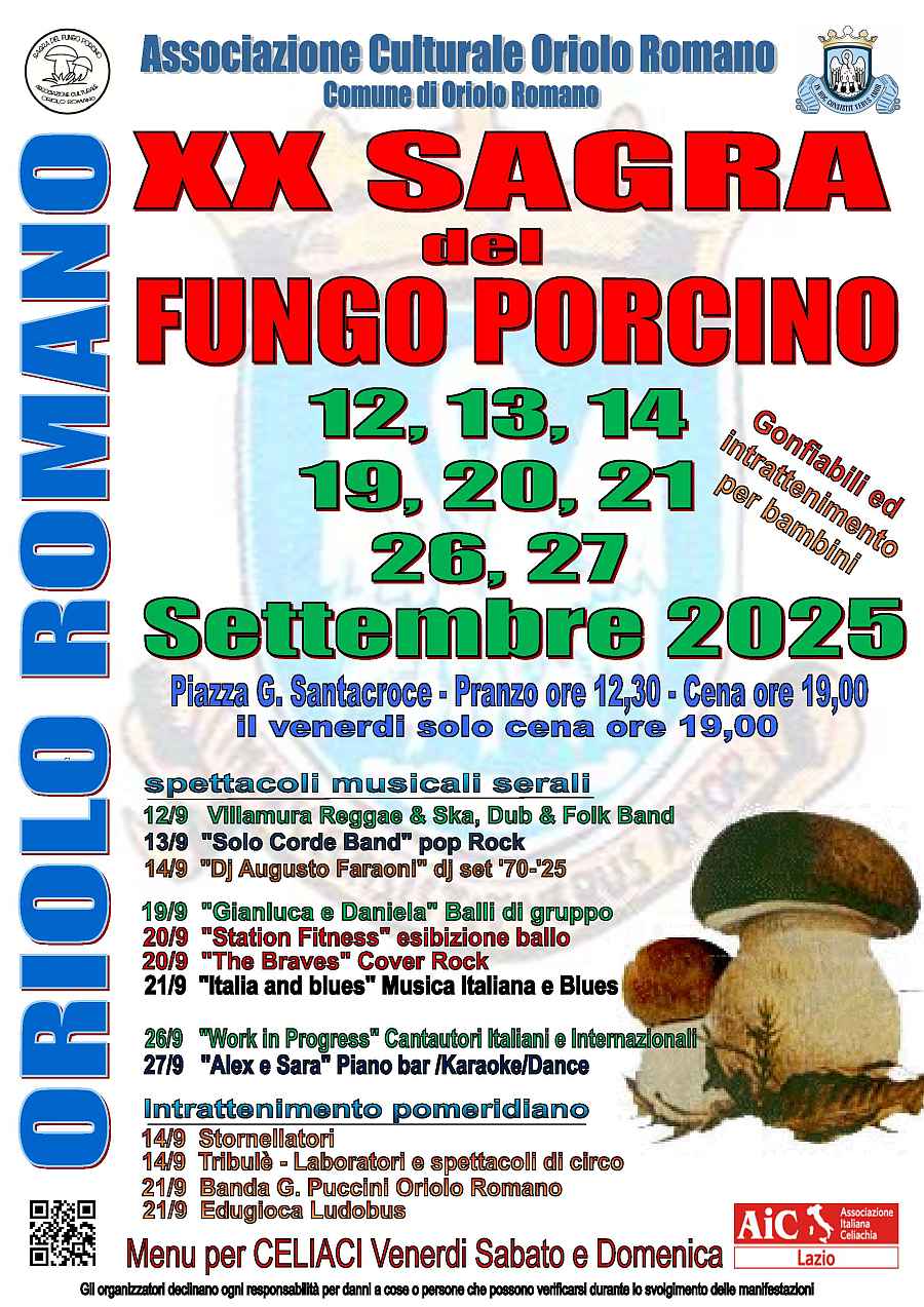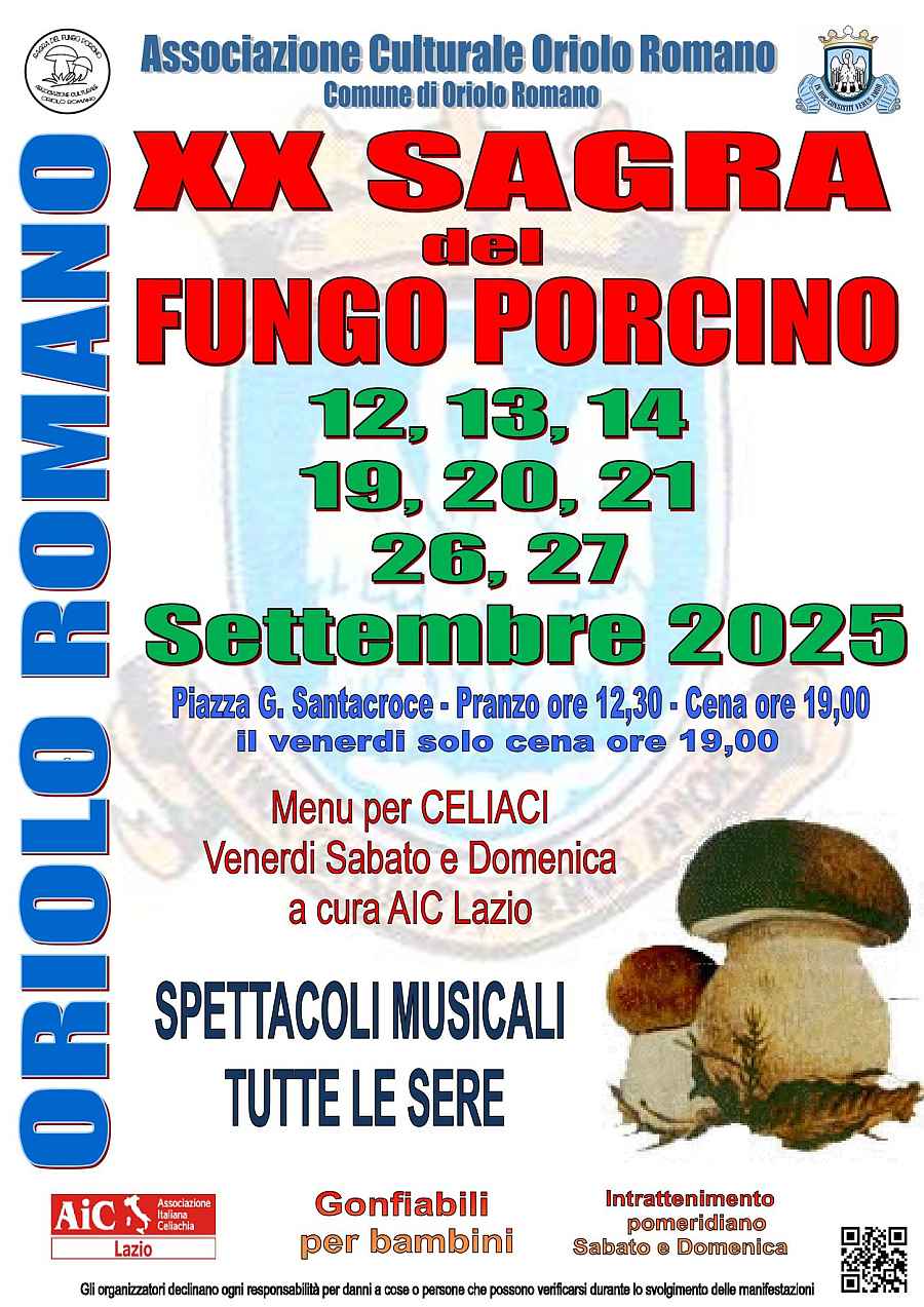La sagra, organizzata dalla Pro Loco di Oriolo Romano, è un'occasione per degustare funghi porcini freschi e cucinati in diverse preparazioni tradizionali, in un'atmosfera di festa e convivialità.