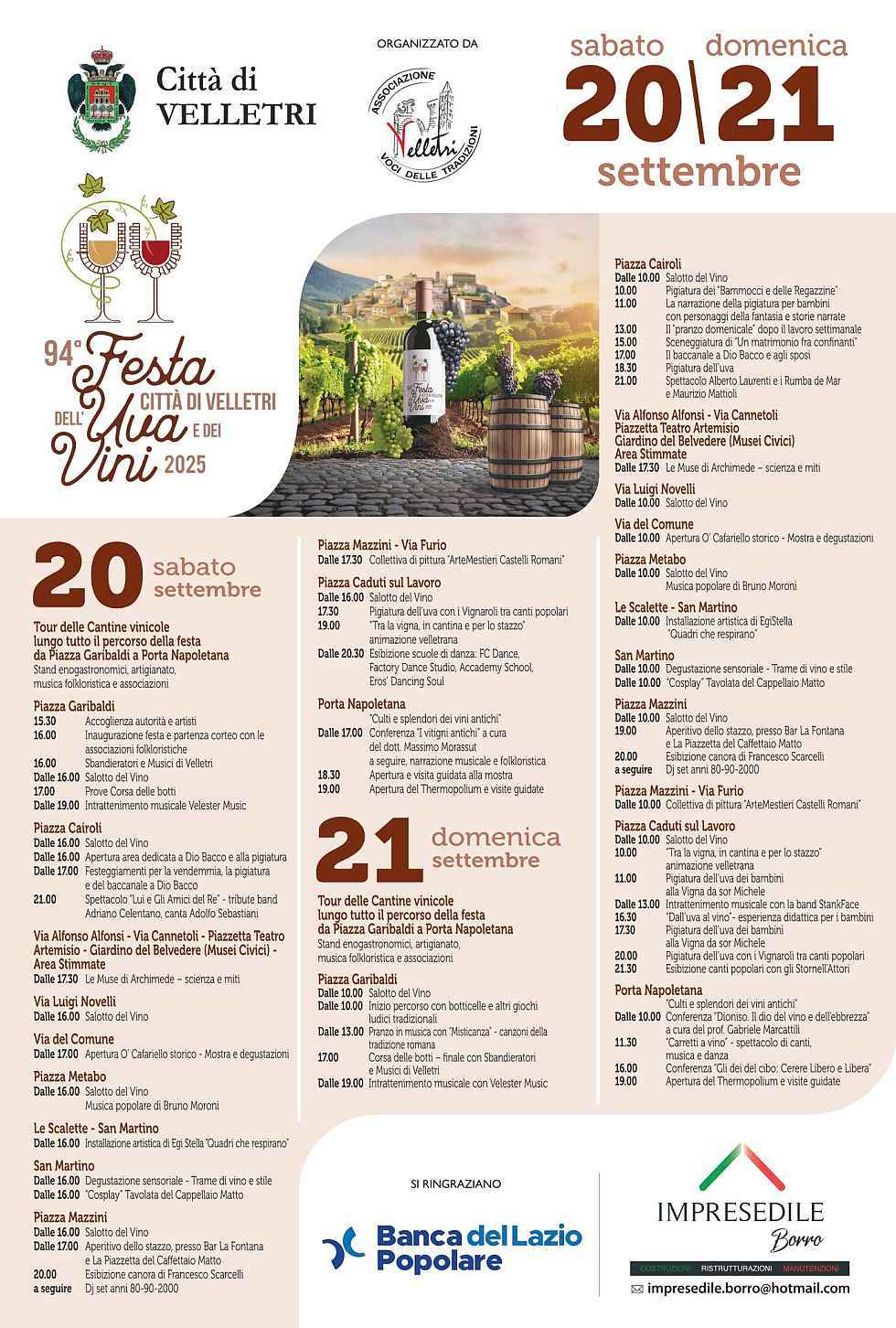 Il centro storico di Velletri si riempie di musica, colori e calici alzati per celebrare il frutto più prezioso delle sue colline!