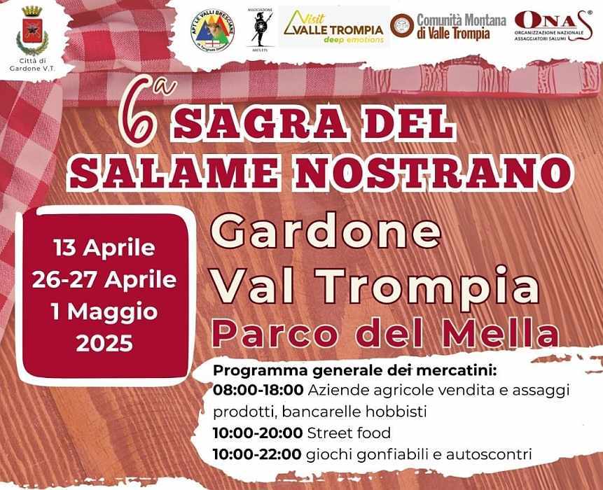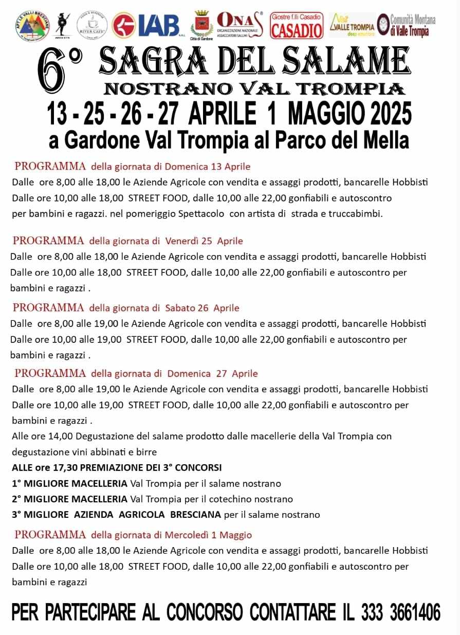 Gardone Val Trompia (BS) "Sagra del Salame Nostrano Val Trompia" 13-25-26-27 Aprile e 1° Maggio 2025
