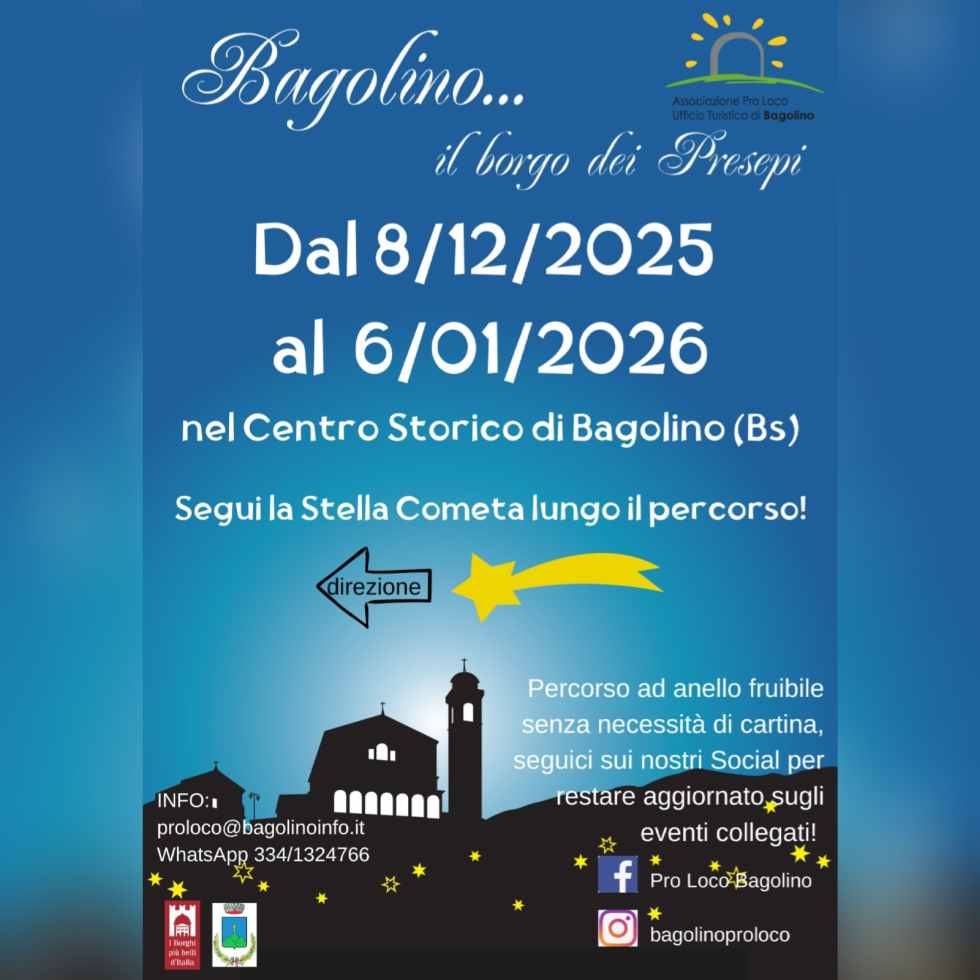 Durante il periodo natalizo, nei suggestivi vicoli di Bagolino, ci si ritrova in un percorso invaso da un'atmosfera unica e magica, con più di 100 meravigliose natività, creando unprezioso incontro tra storia, arte e tradizione.