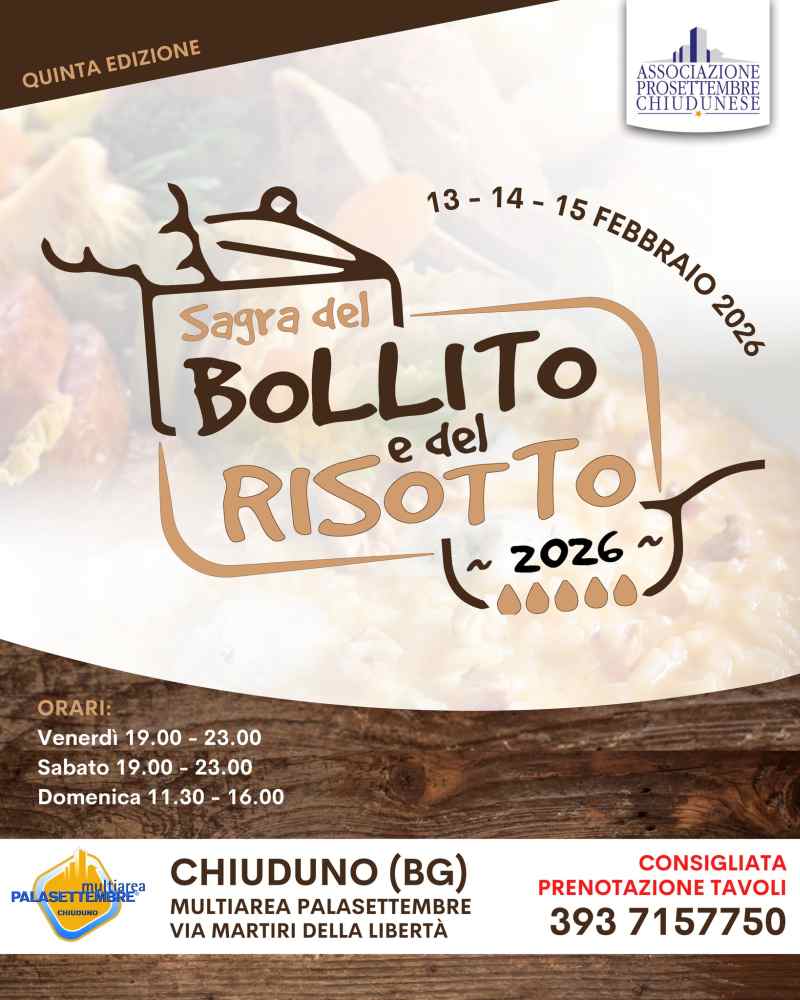Il sapore della tradizione che scalda l'inverno! A Chiuduno torna la sagra dedicata al bollito misto e ai risotti più cremosi della bergamasca.