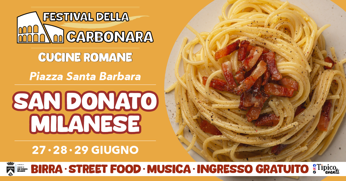 Tipico Eventi approda per la prima volta a San Donato Milanese con il gustosissimo format “Festival della Carbonara | Cucine Romane”, un evento che regalerà ai suoi ospiti un viaggio gastronomico nella Capitale, attraverso specialità e prodotti tipici romani di grande qualità ✨ Piazza Santa Barbara verrà addobbata a festa per trascorrere insieme tre giornate all’insegna del miglior cibo di strada, degli inimitabili prodotti romani e di tanto divertimento per tutti 😋